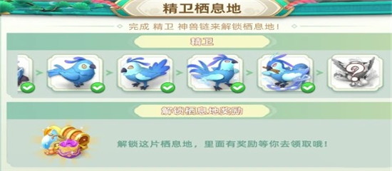 神兽岛解锁新区域需要达到指定的等级或者将某一种指定的神兽合成到最后的一种形态才可以解锁。