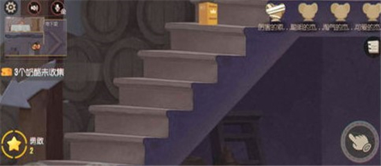 如果我们被猫逼近地下室,不妨试试躲在楼梯的最角落里。老鼠的体积本来就小,操作界面还有两个摁键,我们可以避开猫的视线,趁着猫进地下室搜索,立马爬上楼梯,进行转移。