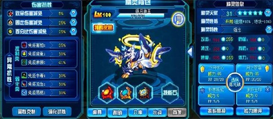 推荐理由:PVE:消强。比天河战将要好,还带减伤,这里有个套路,就是阵亡后,不要还主力(49王哈)而是换一个多倍克制的精灵4倍,反正减伤,理论上不死,这样可以造成高额伤害,配合49先手