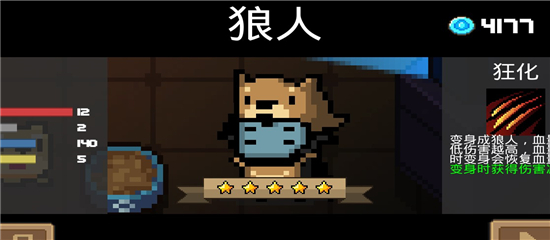 这个。。。。12血2盾真的搞笑来的,野猪顶一下也要破盾,不带蓝盾就是搞事情!对于狼人来说,三血四血是家常便饭,反正开个大血又回到6点。开了大之后爪子伤害真心高,可是不能用远程还是容易一不小心就GG。打boss真的无爱。解锁之后遇到会问你要钱赌博,有时候赌赢就会送你一拳,还是挺好的。狼人手刀伤害也是五点同刺客游侠
