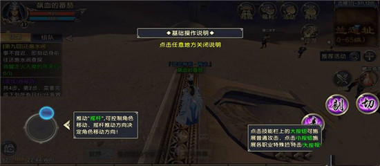 1、首先跟大家介绍一下游戏的基本操作是怎么样的。游戏界面中左边为固定摇杆,任意方向推动摇杆即可控制角色移动,摇杆推动方向决定角色移动方向。右边为技能栏,点击大按钮可施展普通攻击,周围环绕的四个小按钮可施展各职业特殊技能。