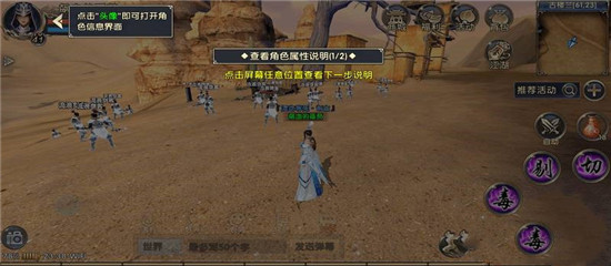 5、查看角色属性、玩家在练级打怪时往往要衡量一下自身属性能否足够击杀怪物,那么如何查看自身属性呢?这时候玩家可以点击左上角自身职业头像打开角色信息界面,展开后即可看到自身血量、内力以及经验的具体数值。值得一提的是,玩家在59级后需要手动升级,升级按钮就在属性界面中。经验值下方显示的为角色基础属性,想要查看详细属性的话则需要点击右边“详细属性”按钮。