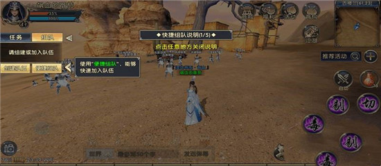 6、快捷组队、在任务栏右边可以看到一个组队按钮,想要快速组队可以使用“便捷组队”按钮,能够快速加入队伍。在便捷组队左侧可选择查看不同队伍目标的队伍,点击队伍后在右上角直接申请一个自己喜欢的队伍,同时也可以使用自动匹配来快速找到一个队伍。想要自己创建队伍的话,可以使用“创建队伍”功能来快速建队并招收队员。