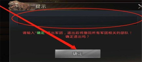 5、输入退出,点击确定按钮,就可以成功退出军团了。