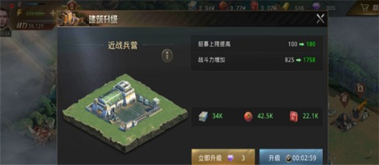 最后也是最重要的一点是,进行建筑的升级提升,这样的话,我们不论是升级指挥中心,矿井,番茄田,装甲兵营,近战兵营都是非常不错的一个提升战力的选择,这里小伙伴一定不要忘记了城墙这个点,这个点是容易被小伙伴所忽视的,但是我们一次只能够开始一个列队,这点还是比较费时间的,小伙伴要充分利用利用列队的空闲时间,这样的话,我们的战力就在不知不觉中提升自己的战斗力了。