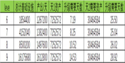 数据说话,看一下如果是6级碗的花升级到天脉1累计需要资产7252572,需要用时为7.19天。其他等级的碗时间依次降低。