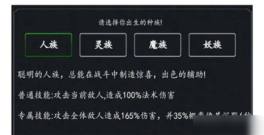 1、人族:中后期选手,前期会比较弱势。当有一定装备后,人族在挑战boss,有独特妙处。种族技能为沉默效果,谁用谁知道,特别中后期,大部分挑战都在比拼谁能更高效的进行技能释放。