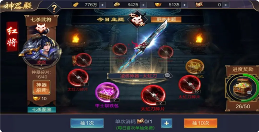 日常中想要获得神器碎片和突破材料主要是通过巅峰对决和神器殿这两个玩法实现的。