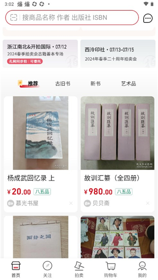 孔夫子旧书网app是一款非常受欢迎的二手书交易平台,软件内提供了众多旧书籍,用户可以根据自身的需求进行书籍的搜索,不过因为品相等原因,价格可能略微有所区别,当然了,除了旧书之外,软件内还是提供了许多的新书,以及各种艺术品,线装古籍、民国旧书、期刊、报纸、钱币、邮票,高达数十种类别,甚至还有着和线上拍卖专区,大家可以直接看到物品的高清大图,而且出价还会实时进行更新,不会存在任何欺诈行为,想必大家也都知道这个套路,多少钱多少钱拍卖手机,会有人机自动加价,让你会高于市场价购买,不过在孔夫子旧书网app中就不一样了,所有的拍卖都是公开透明的,让你可以买的更加的安心。
