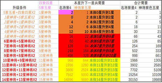 这里有个小技巧:比如你孙策红色3星,需要两个红色2星武将,你完全可以把孙权升到红色2星,到时候孙策要上红色4星,孙权直接献祭,再重新培养一个孙权即可。