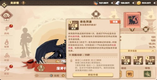 激活【人龙默契·其三】技能【夜色突袭】获得强化。【夜色突袭·强化一】:当敌对目标被控制时,没牙仔可额外获得怒气,相同目标触发效果间隔2.5秒。
