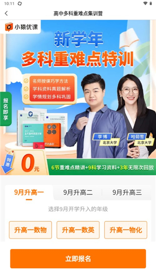 而且,在小猿优课app中还提供了1V1期末规划、多科重点难点培训、数竞备考规划、期末弯道超车、新学年培训营等多种课程入口,用户可以根据自己的需求进行报名,可以全方位提升你的学习技巧,无论是考高中,还是考大学,有了这款软件都能轻松实现。
