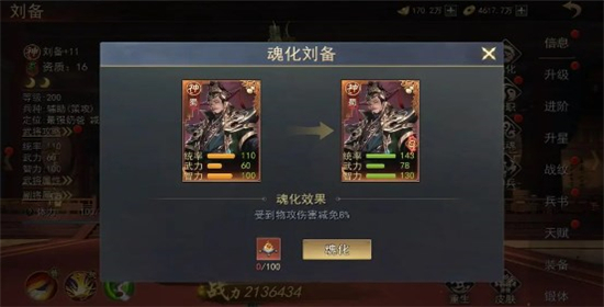 2、武将魂化可大幅度提升武将基础属性并激活魂化效果