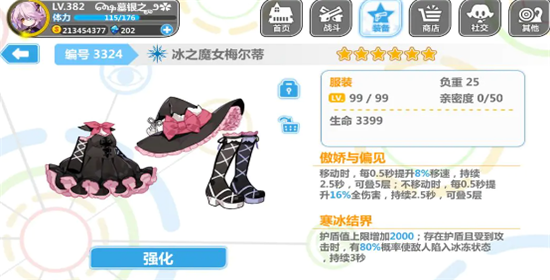 4、衣服,一技能为2.5秒启动40%加移速,2.5秒不动80%加伤,中等偏上的加移速和不太常触发的加伤,二技能加盾上限2000,可以应对生命上限减少关卡,并且还自带硬控buff,看起来还不错。不过这衣服可以借基友,所以就倒数二。(图为衣服)