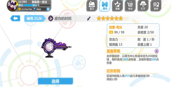 时针炮是一个非常有趣的放置装备,本身具有炮台的物理攻击方式,并且可以产生时停力场造成持续能量伤害,使用狂战士徽章可以持续放置时针炮,提高时针炮攻击频率。时针炮可以在放置以及时停关卡中使用,本身具有物理,能量双属性,可以破除黑白盾,但是由于时停效果触发几率低,并且时停力场会产生伤害,因此容错率不是很高,但因为与狂战相配合,可以换掉加伤过高的徽章。