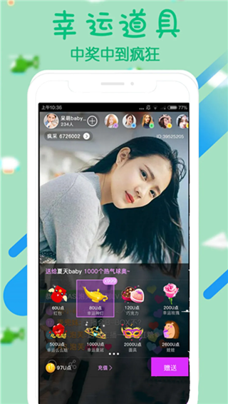 瑶池直播app是一款非常火爆的在线直播软件,这里面有着许多精彩内容,各种好看有趣的直播都能在这里面找到,无论是颜值美女帅哥,还是各种才艺表情,绝对可以满足不同用户的观看需求,而且用户在直播间内还能与主播进行实时互动,聊一些生活中的趣闻,甚至还可以和主播连麦,进行语音对话哦。