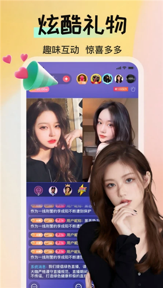 火火直播app是一款高质量直播互动平台,这里面有着许多高颜值主播,无论是清纯学妹,还是高冷御姐都可以在这里面看到,而且你能通过发送文字的方式随时进行实时互动,如果无法吸引主播的关注,最简单粗暴的就是赠送礼物了,因为每个礼物的赠送都会有炫酷的特效展示,让你心仪的主播关注到你哦。