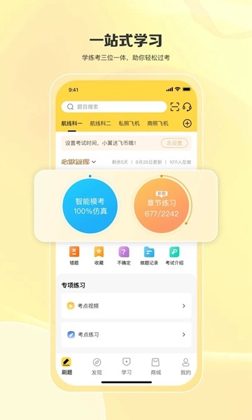 飞行之翼app官方版除了课程多,还特别实用,它能实时告诉你考试时间,还能让你做模拟考试,看看自己学得怎么样,还有章节练习和错题统计,帮你更好地记住知识点,提高考试成绩,让你能够轻松获取各种航空知识,提升自己的飞行技能和素养,早日成为一个优秀的飞行员。