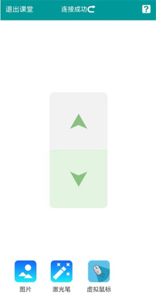 在教学课程的上课状态下,点击“更多-投屏”工具,弹出二维码,在移动端用移动授课工具扫码连接课堂,可进行授课资源PPT文件的动画播放控制、图片投屏、激光笔、虚拟鼠标的操作。PPT动画控制在授课资源打开PPT课件后,可以在移动端进行上一步或下一步的动画播放操作。图片投屏点击“图片”图标,进入系统相册,可以拍照或从相册选取图片进行投屏,选取图片的上限为4张。