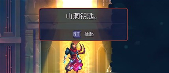 4、然后我们就能使用二段跳跳到平台上,从而跳到右边获得山洞钥匙了。
