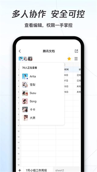 最重要的是,它提供了权限设置功能,用户可以自由设置文档的查看和编辑权限,保证了文档的安全性。不仅如此,腾讯文档还采用了云端储存加密技术,有着极高的数据保密性,用户可以放心使用,有需要的朋友们可以来下载使用哦。