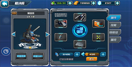 4、技能:超级光速军刀(初始技)、6连装榴弹发射器(机体升级至绿色后解锁)、能量提升(机体升级至蓝色后解锁)、能力提升(机体升级至紫色后解锁)。