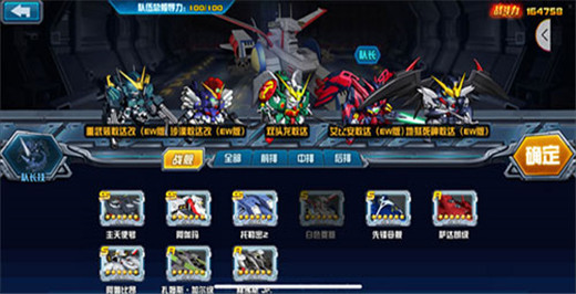 队伍组成:拂晓敢达(队长机)、强袭自由敢达、无限正义敢达、观星者敢达、双头龙敢达。