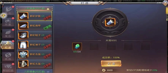 4.装备打造1-4阶打造成功率为100%,4阶后装备打造成功概率会下降,装备打造失败会丢失50%打造石,可以使用打造必成劵,将成功率提升到100%;