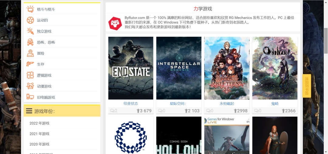 打开网站就可以看到,这里资源非常丰富,涵盖了大量热门、主流游戏的免费版本。