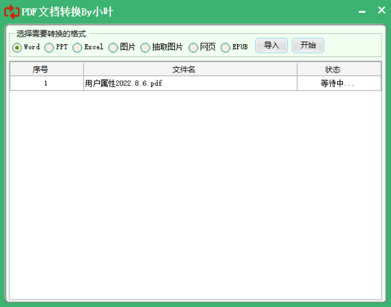 首先就是 PDF 的转换,只需要将需要转换的 PDF 拖入软件框中,然后选择生成的格式,点击「开始」,等待几秒钟,文档也就转换完成了!