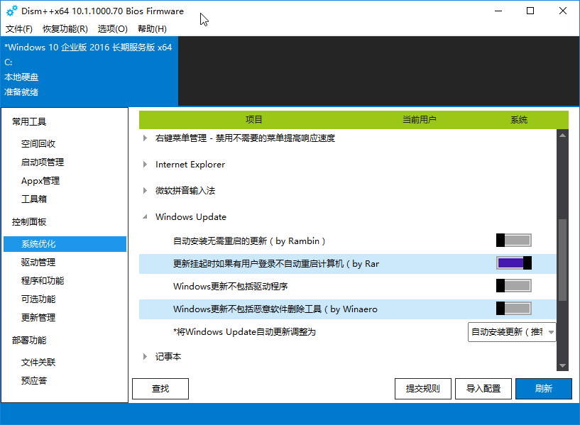 - 新增Fea,Dism++规则库,增强对Defender、人脉等处理(感谢 iliGPU、冰激凌小子、MS-PC2、救赎之道)。
