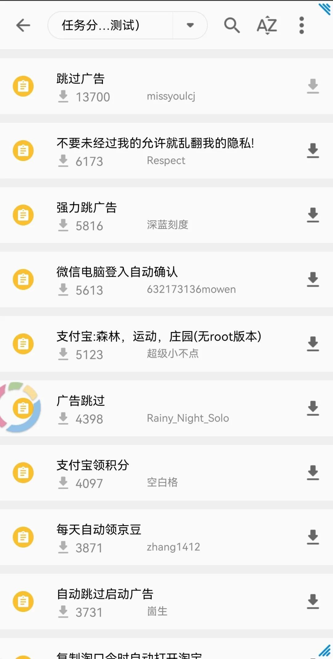 更重要的是 FV 悬浮球支持用户自己编写并向社区中上传代码脚本,比如“强力跳广告”、“自动跳过启动广告”等等。