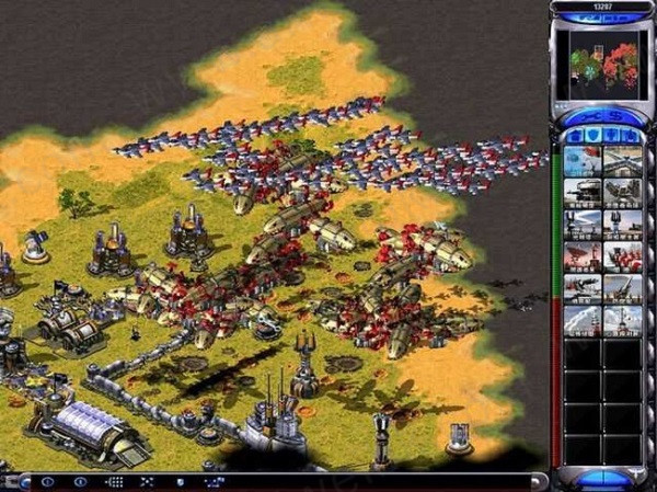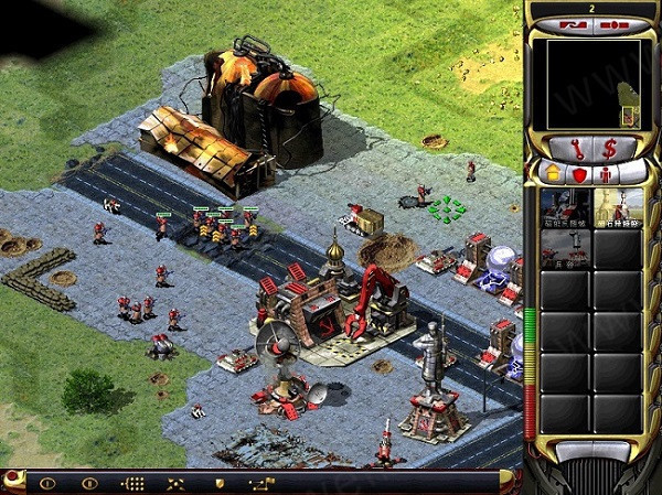 由于我打的大部分单挑都是快打,所以什么高级兵种和海军都不实用,可以说陆军一战定胜负。红警本身有个不同于星际的很大的特点就是建筑可以卖,在单挑的过程中钱就是军队,更多的军队就是胜利,所以雷达不要造,开始用狗探到敌人就行了,基地要在适当的时候卖掉转化为军队,这点是很关键的。还有一点,因为不同于星际的多兵营就能多出兵原理,所以我一般是不会造矿车的——会影响坦克的建造,所以都是做矿厂,然后卖掉,这样可以保证军队和经济的并行不悖。