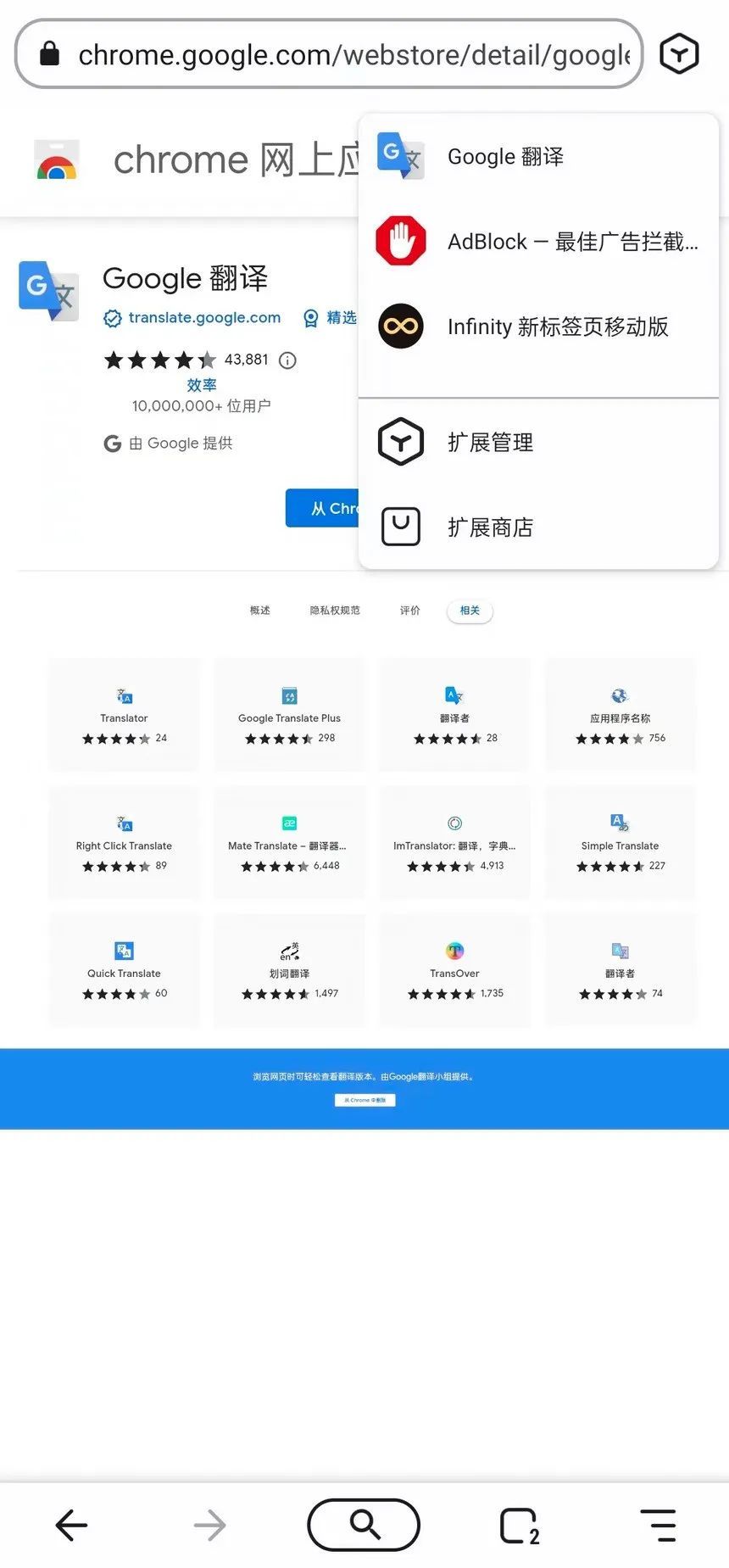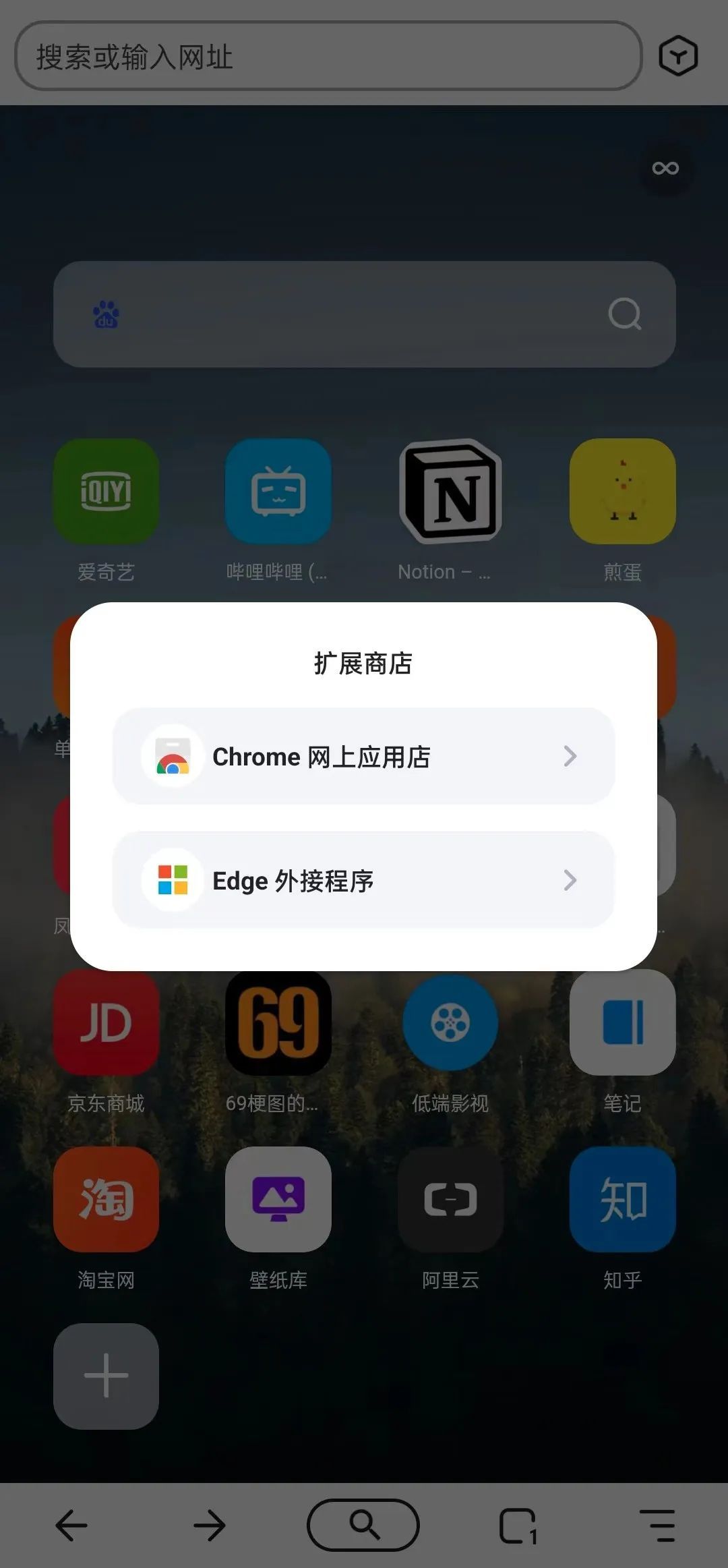 可惜市面上大部分主流浏览器在移动端上都差了点意思——不支持安装插件,包括Chrome、Edge。