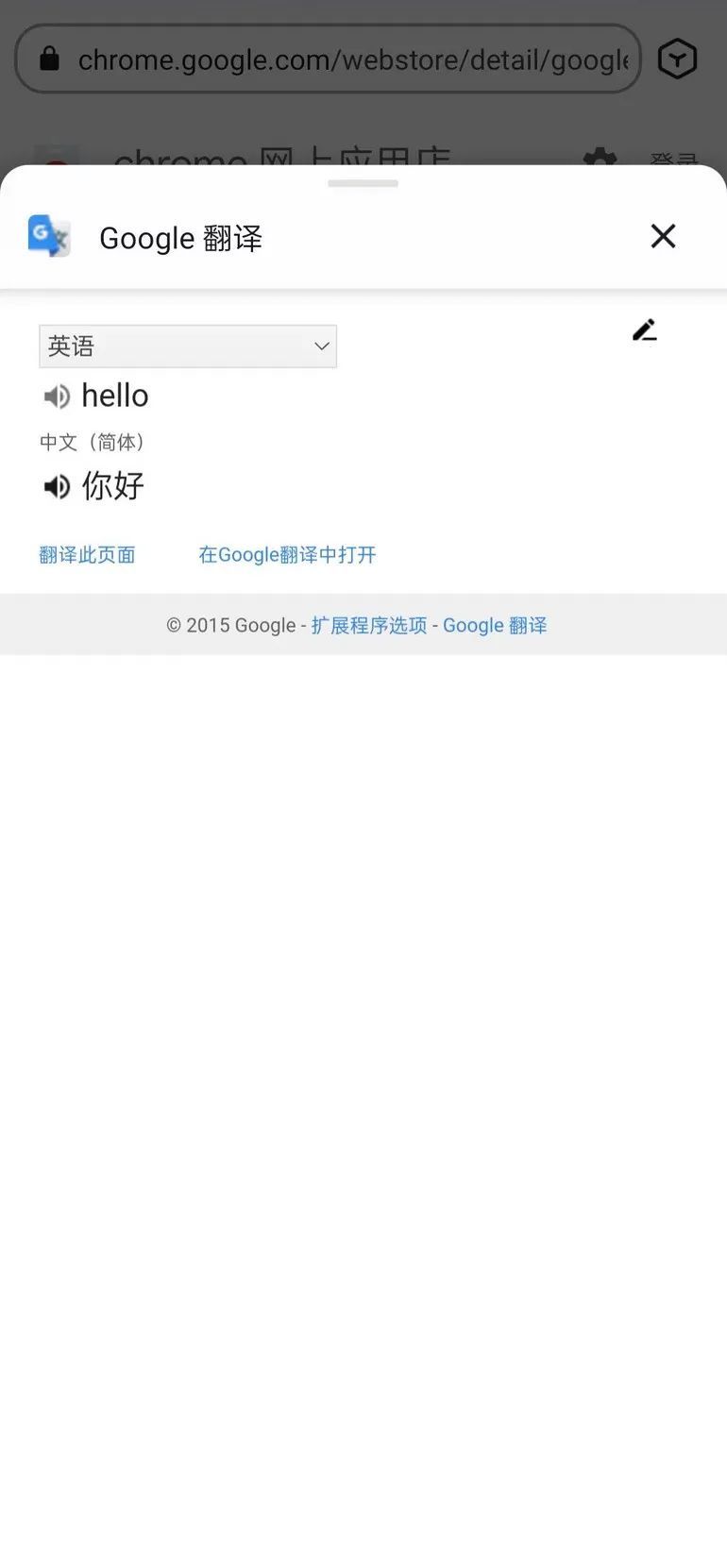 以google翻译插件为例,安装完成后,在小弹窗中单击它的图标,就能在当前页面展开文字的翻译结果。