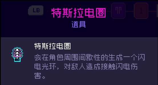 会在角色周围间歇性的生成一个闪电光环,对敌人造成接触闪电伤害。