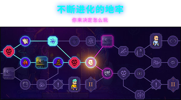 BOSS房:在地图上以怪物图案标识。进入后就会开启BOSS战,打赢后会开启传送门可前往下一个关卡。