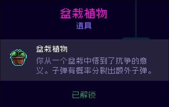 你从一个盆栽中悟到了抗争的意义。子弹有概率分裂出额外子弹。