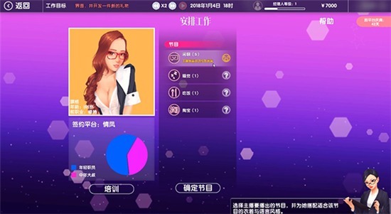 为什么选择女主播经济公司:因为这个节目的存在就是一个bug,前期可入手,0.1超低的体力消耗,服装要求朴实无华,语言风格为搞笑,符合语言可升级的要求,最重要的是其三项基本属性++,魅力榜简直是顺手拿下的。
