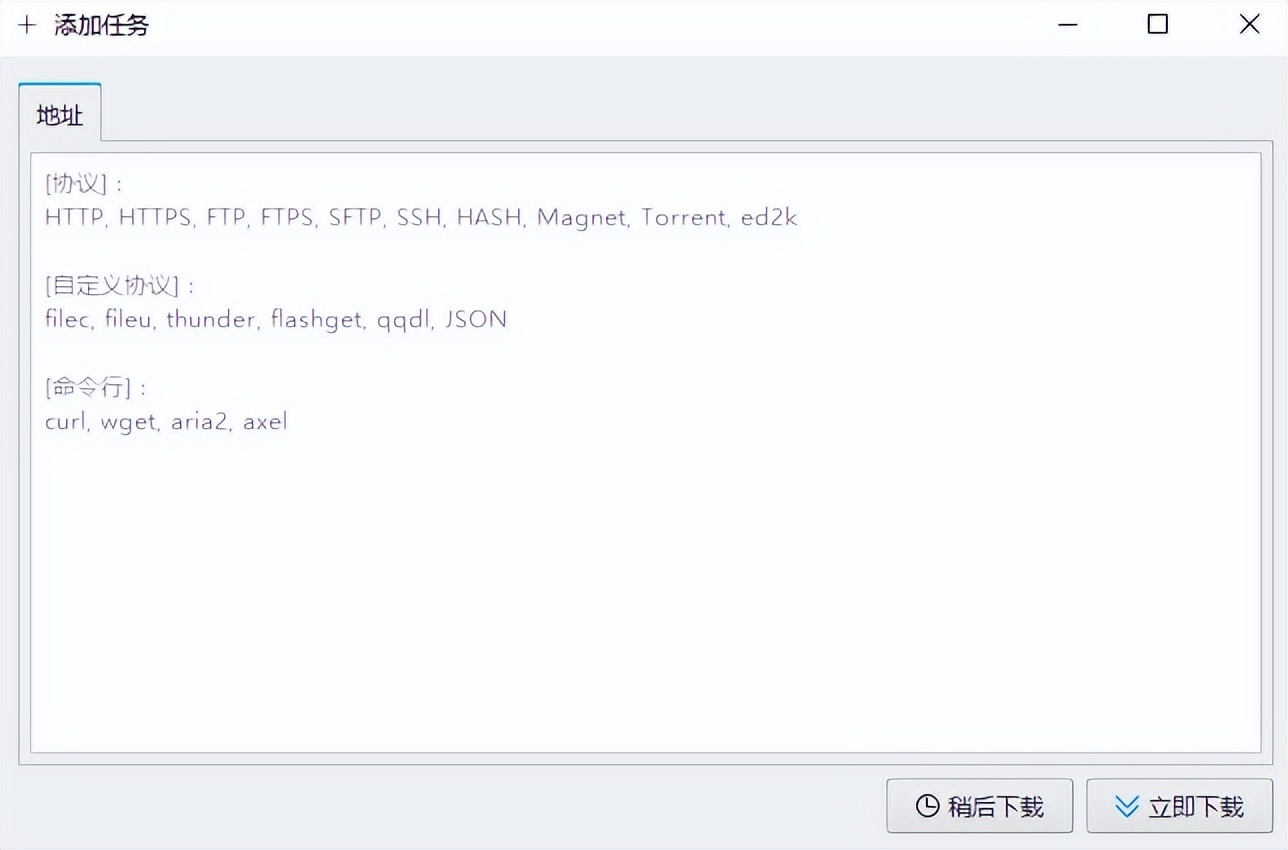 除了支持普通的 HTTP 下载,还支持 BT 下载,而实际上,它还能支持 thunder 链接、qqdl 链接等这类迅雷的专链,支持的下载协议非常全面。