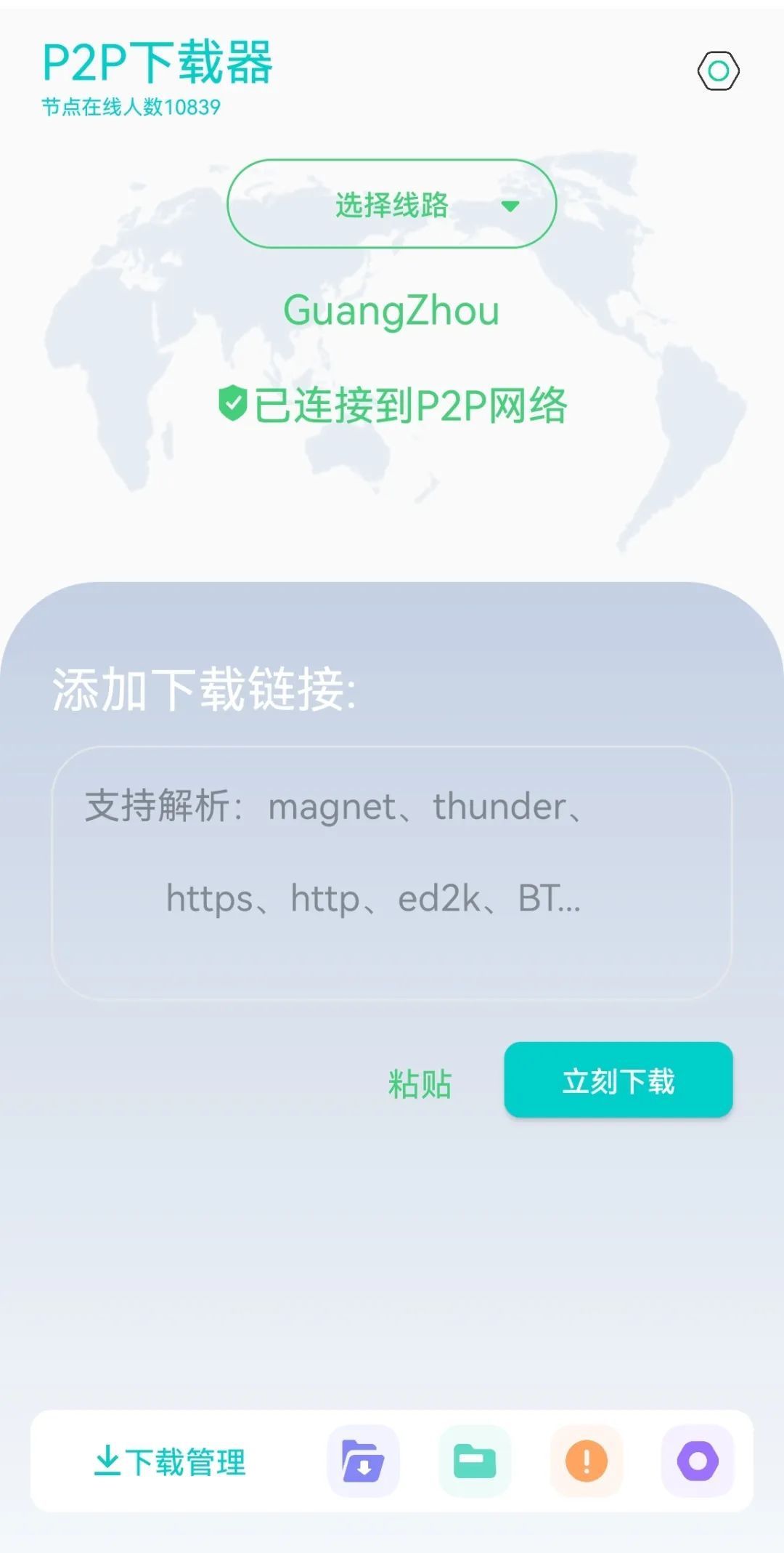 支持下载的格式也很多,比如 magnet、thunder、https、ed2k、BT 等,并且可以自己切换节点,目前软件内总共有 14 个节点。