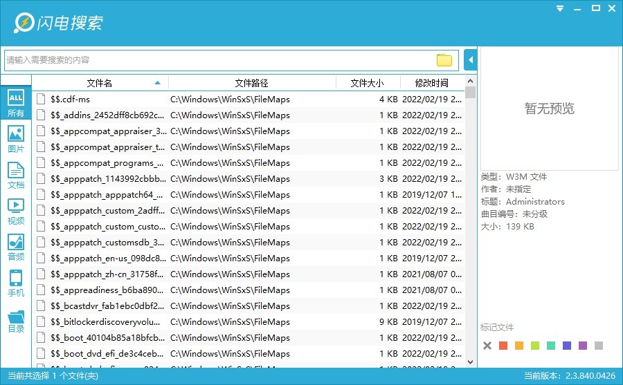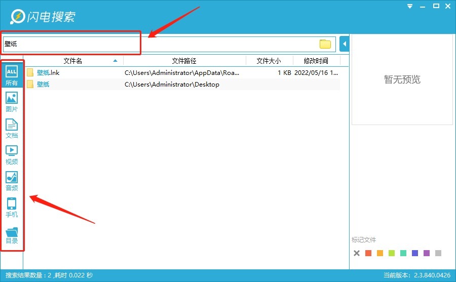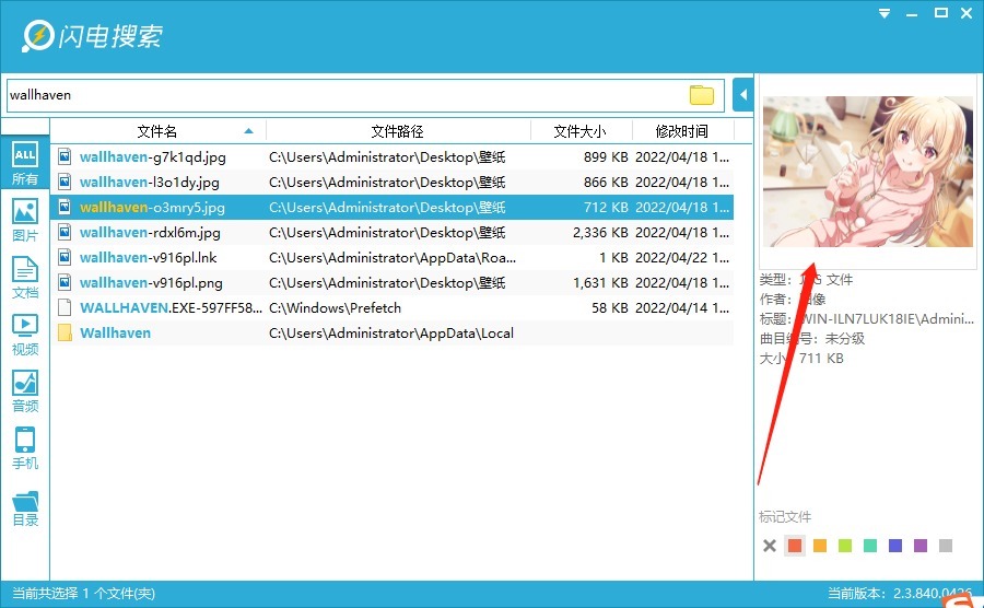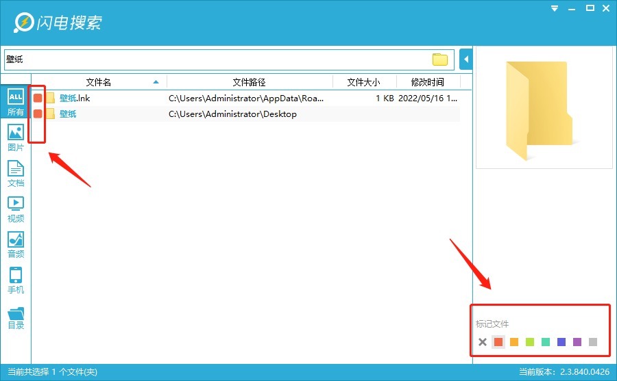 另外有一个非常实用的功能,文件标记功能,可以把你找到的文件进行标记,下次打开软件后会自动排列在最上方,非常方便!