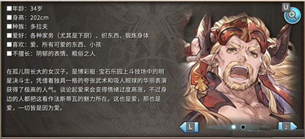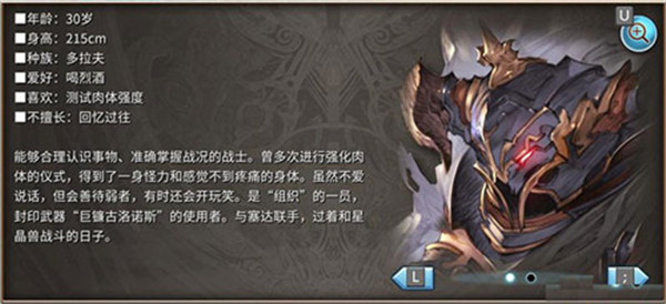 1、隶属于旨在狩猎星晶兽的“组织”的多拉夫族战士,也是封印武器“巨镰古洛诺斯”的契约者。
