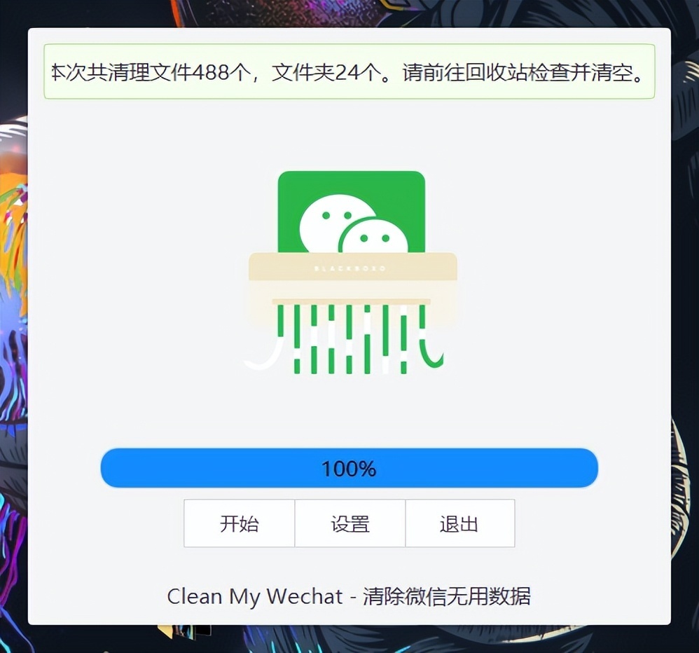 设置完成后,回到主界面点击【开始】, CleanMyWechat就可以自动清理了。
