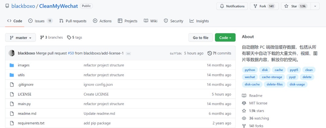 简单来说,CleanMyWechat一款开源的PC端的清理工具。
